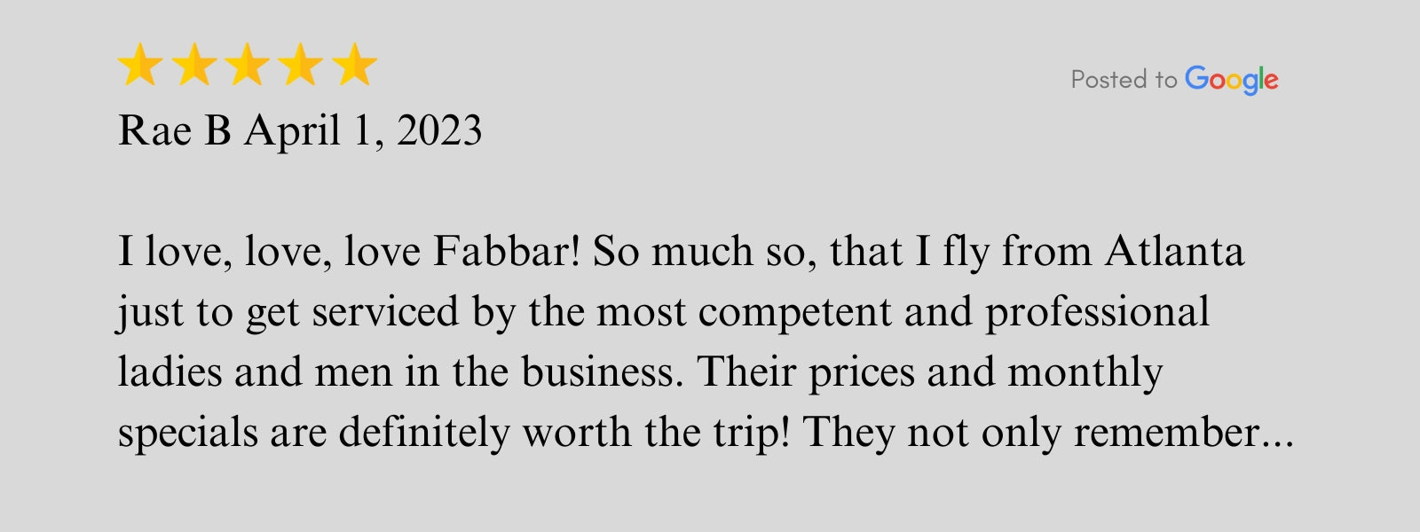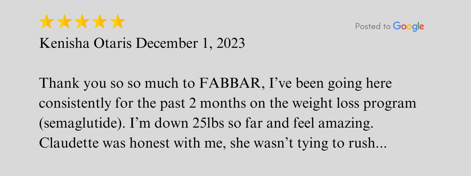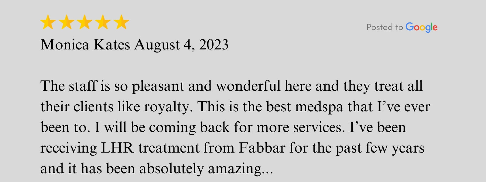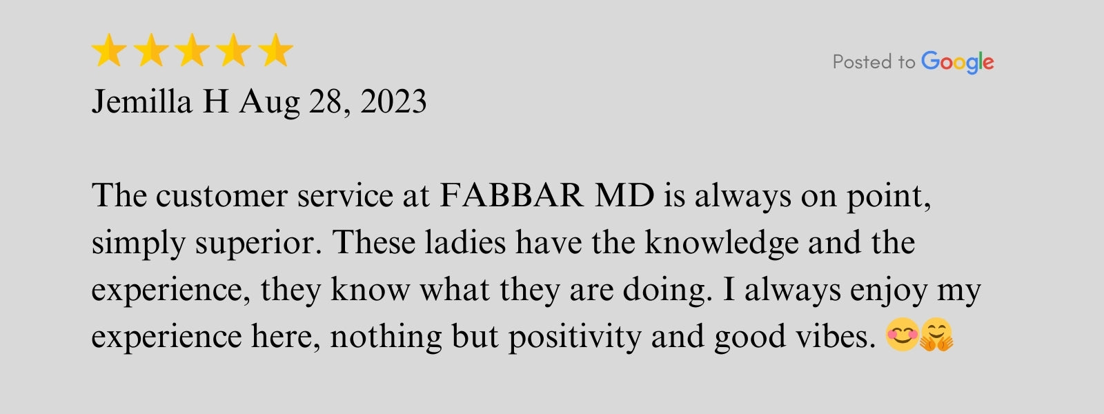 Leave us a Google Review@FabbarMd and share your favorite med spa moments using #livinglifefabulously
